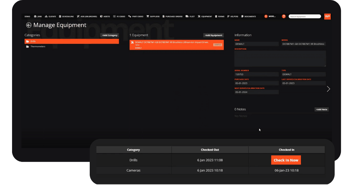 With WorkPal’s Equipment Management never lose track of a tool or a piece of equipment again. Our equipment management feature provides a real-time view of your inventory, enabling you to check items in and out, manage maintenance schedules and improve accountability across your entire team.
